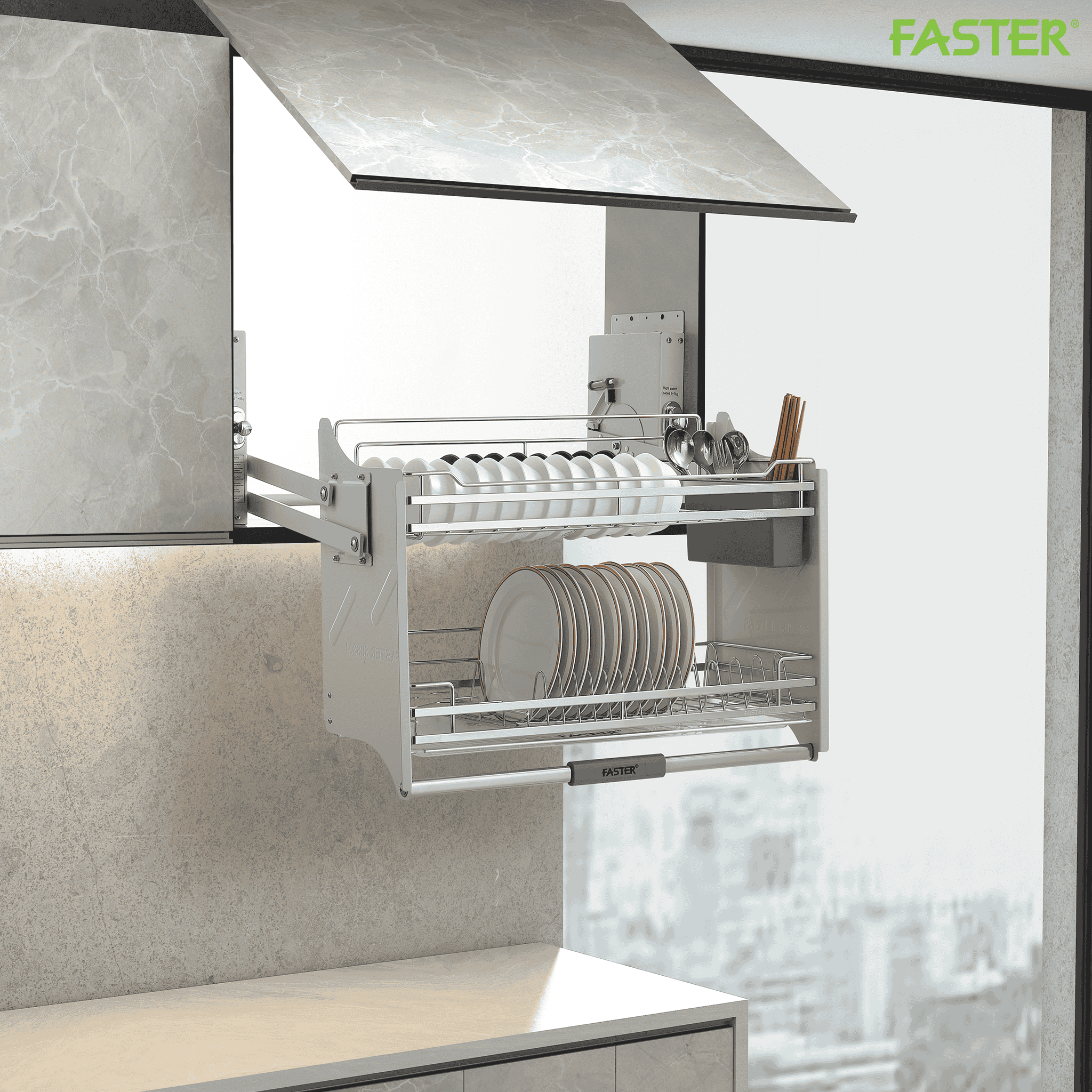 - Thao tác nhẹ nhàng: Hệ thống nâng hạ linh hoạt giúp việc lấy hoặc cất bát đĩa trở nên thoải mái, không tốn nhiều sức lực.
