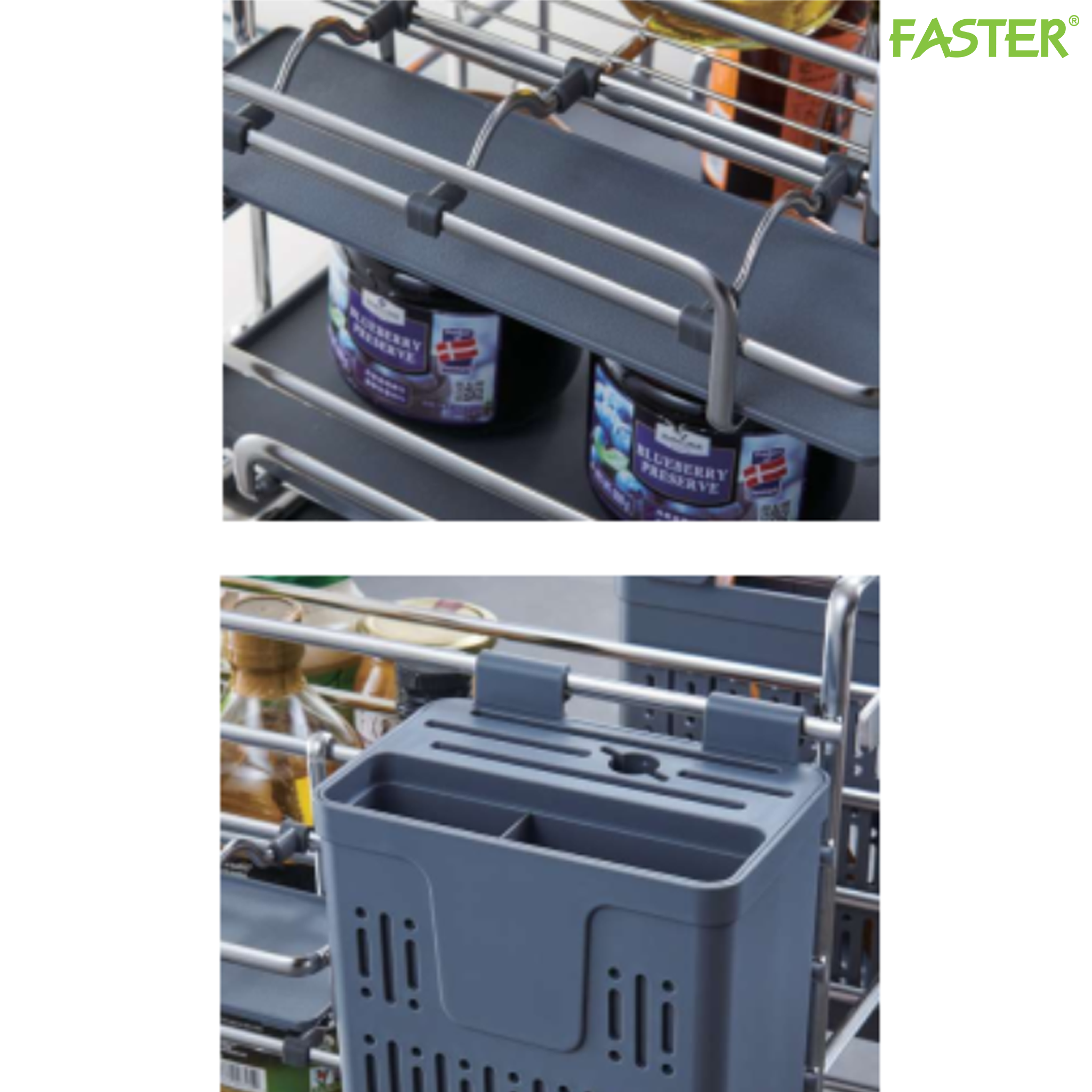 Giá đa năng để gia vị, chai lọ và giao thớt (giải pháp không gian tủ bếp dưới)